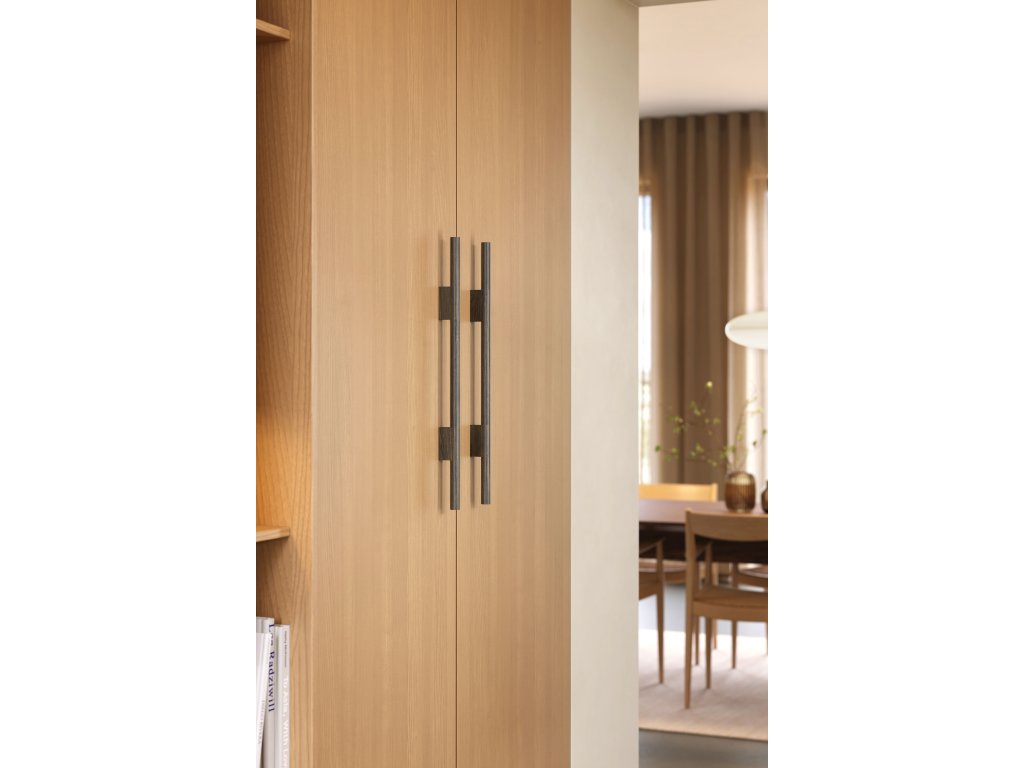Skandinávská – minimalistická a vznášející se. Tato výrazná úchytka oslavuje interakci mezi robustním kulatým barem a podstavci na dvířkách nábytku. Precizně spojené dřevěné prvky s proporcemi, které vyzařují robustní a funkční vzhled. Její jednoduchost a vznášející se charakter ji činí výrazným zástupcem modernity v designu nábytku a skříní.Doplňkové parametry