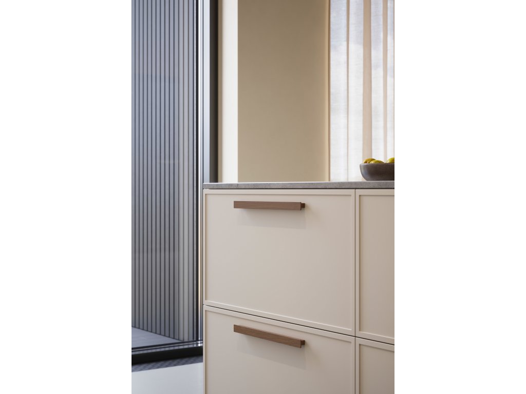 Shelter je elegantní úchytka s výrazným schodem na vrcholu. Její design je pečlivě optimalizován s ostrými hranami a šikmými plochami, aby dosáhl co nejlepší funkčnosti a estetiky. Konstrukce úchytky klade důraz na příkladnou plochu pro uchopení a tímto způsobem spojuje estetiku a funkčnost tím nejkrásnějším způsobem.Doplňkové parametry